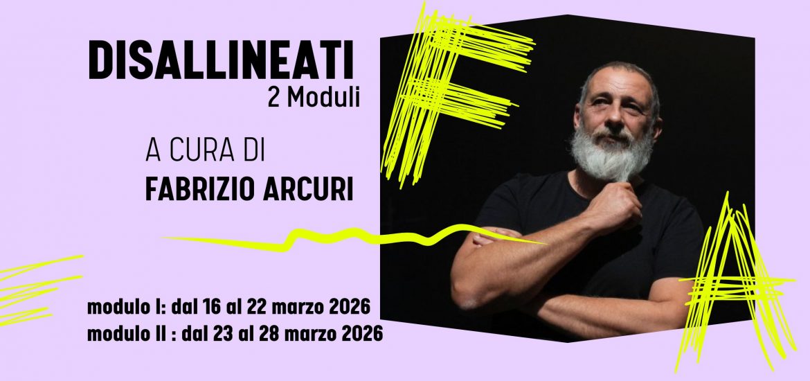 DISALLINEATI Pratiche performative in convivenza e attrito A cura di FABRIZIO ARCURI due moduli > modulo 1: 16-21 marzo 2026 | 10.00 – 18.00 | (6 giorni) per chi non ha mai studiato con Fabrizio > modulo 2: 23-28 marzo 2026 | 10.00 – 18.00 | (6 giorni) | per chi ha già partecipato Chi […]