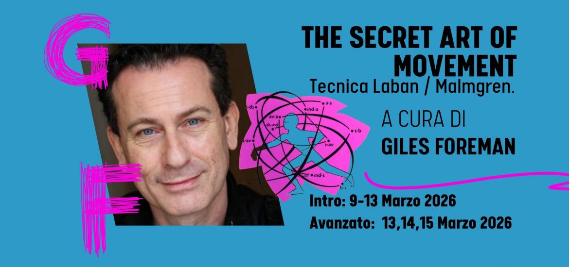 THE SECRET ART OF MOVEMENT Psicologia del movimento e costruzione del personaggio A cura di Giles Foreman > INTRO: I fondamenti della tecnica Laban/Malmgrem 9 – 12 Marzo 2026 | 10.00 – 18.00 | (4 giorni) > AVANZATO: Lavoro sulla scena 13 – 15 Marzo 2026 | 10.00 – 18.00 | (3 giorni) @ […]