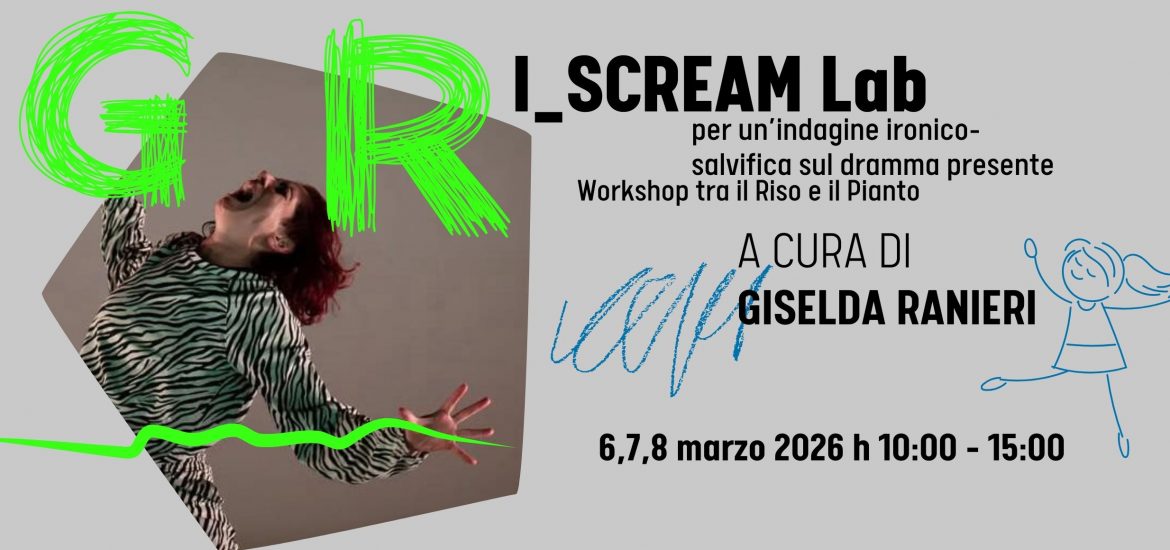 I_SCREAM Lab: per un’indagine ironico-salvifica sul dramma presente Workshop tra il Riso e il Pianto A cura di Giselda Ranieri 6 – 8 Marzo 2026 | 10.00 – 15.00 | (3 giorni) per attori, attrici, performer, danzatori, danzatrici e a chiunque voglia ampliare la propria presenza scenica attraverso il corpo, la voce e la loro […]