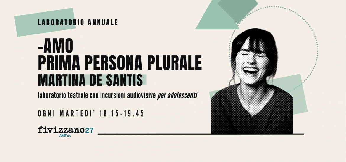 -AMO PRIMA PERSONA PLURALE laboratorio teatrale con incursioni audiovisive per adolescenti con Martina De Santis – – ogni martedì 18:15-19:45 dal 17 settembre INFO: Martina 3802978798 martina.desantis@yahoo.it Lezioni di prova aperte: 17 e 24 settembre dalle 18.30 alle 20.00 – – esperimenti, racconti, racconti a puntate, dispute, idealizzazioni e satire, rivendicazioni, reportages sulle prime manifestazioni […]
