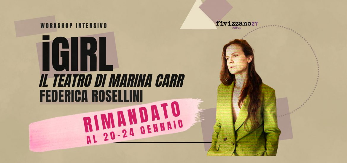 da lunedì 20 a venerdì 24 gennaio h 10:00 – 17:00 iGIRL – il teatro di Marina Carr con Federica Rosellini accompagnati anche, in una delle nostre giornate di laboratorio, dallo sguardo sapiente ed esperto di Monica Capuani, traduttrice di iGirl e di altri testi della Carr insieme a Valentina Rapetti. il laboratorio è aperto ad […]