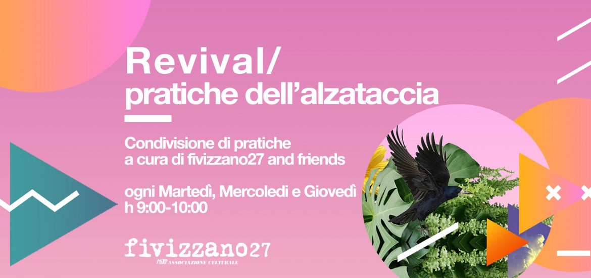 Revival/pratiche dell’alzataccia Condivisione di pratiche a cura di fivizzano27 and Friends tutti i Martedì, Mercoledì e Giovedì h 9:00-11:00 Pratiche dell’alzataccia è un vaso comunicante tra le diverse forme che trovano spazio a fivizzano27 con il desiderio di condividere pratiche di risveglio dei corpi, dei sensi e del linguaggio. Pratiche dell’alzataccia prende le mosse dal […]