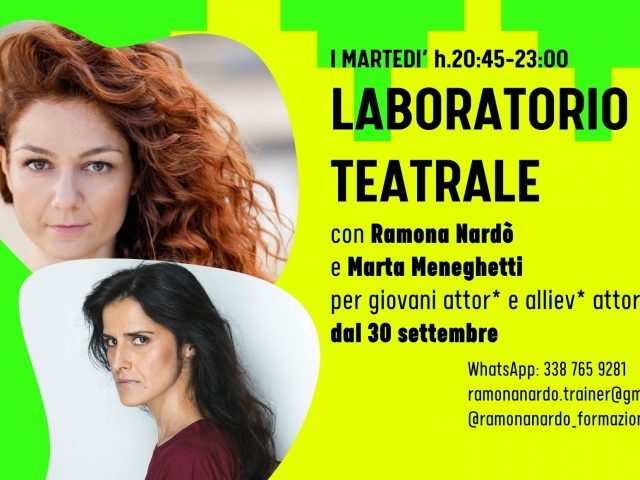 LABORATORIO TEATRALE con Ramona Nardò e Marta Meneghetti per giovani attor* e alliev* attor* dal 30 settembre 🕘 Ogni martedì dalle 20.45 alle 23.00 (Da ottobre a metà giugno) Questo laboratorio è pensato per chi sente la necessità di continuare a formarsi, approfondire, allenarsi. Attraverso un lavoro sia individuale che di gruppo, intraprenderai […]