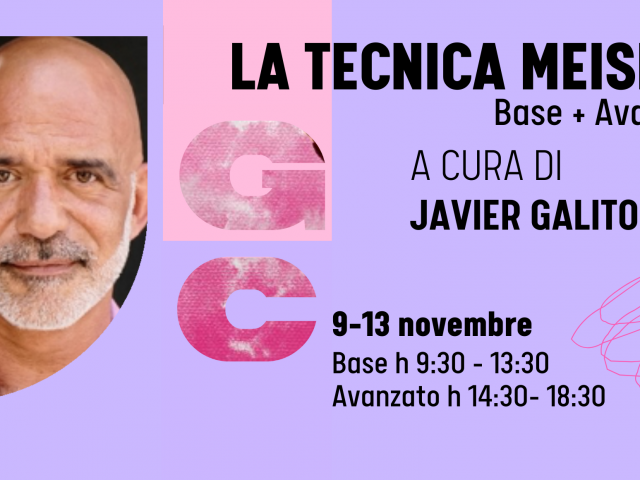 TECNICA MEISNER CON JAVIER GALITO CAVA 📅 9-13 Novembre | LIVELLO BASE >> 9:30 – 13:30 (4h) 📅 9-13 Novembre | LIVELLO INTERMEDIO/AVANZATO >> 14:30 – 18:30 (4h) 📍 @fivizzano27 Verranno selezionate le prime 12 candidature in ordine di iscrizione per ciascuna classe Il corso prevede un paio d’ore di lavoro tra una lezione e l’altra […]