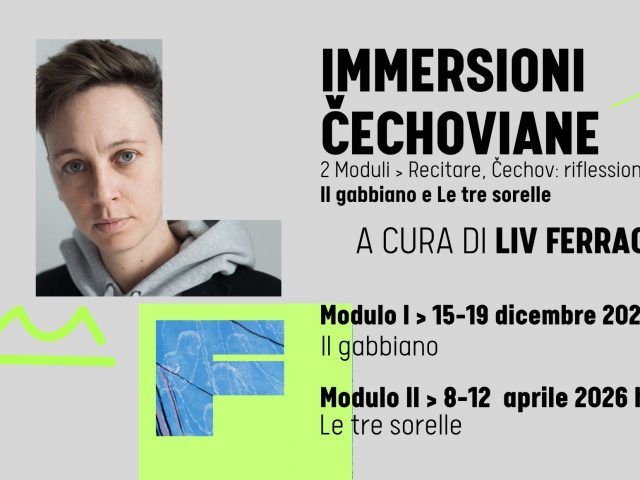 IMMERSIONI ČECHOVIANE Recitare, Čechov: riflessioni pratiche / 2 Moduli: Il gabbiano e Le tre sorelle | con Liv Ferracchiati 📅 da lunedì 15 a venerdì 19 dicembre 2025 | h 10.00 – 18.00 circa | Il gabbiano 📅 da lunedì 15 a venerdì 19 aprile 2026 |h 10.00 – 18.00 circa | Le tre sorelle […]