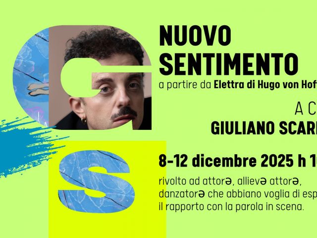 NUOVO SENTIMENTO workshop di interpretazione e creazione del personaggio a partire da Elettra di Hugo von Hoffmansthal a cura di Giuliano Scarpinato 📅 da lunedì 08 a venerdì 12 dicembre 2025 | h 10.00 – 18.00 circa 📍 @fivizzano27 Il workshop è rivolto ad attorə, allievə attorə, danzatorə che abbiano voglia di esplorare il rapporto […]