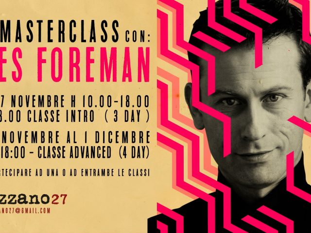 2 MASTERCLASS CON GILES FOREMAN CLASSE BASE :: 25-26-27 Novembre CLASSE ADVANCED :: dal 28 Novembre al 1 Dicembre Orario :: 10h00-18h00 (7 ore al giorno con una pausa di un’ora) Presso spazio Fivizzano27 (Pigneto) Roma – Il laboratorio sarร tradotto in italiano per chi non parla inglese. – Si puรฒ scegliere di partecipare anche […]