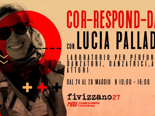COR-RESPOND-DANCES con Lucia Palladino dal 24 al 28 maggio – h 10:00-16:00 presso spazio fivizzano27 (metro C – pigneto) ย Rivolto a chiunque sia interessat* a partecipare alla condivisione di pratiche performative di ricerca artistica che utilizzano il corpo, la scrittura e la composizione come strumenti di allenamento al pensiero/corpo critico. ย Durante il laboratorio sperimenteremo pratiche […]