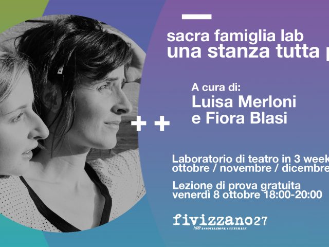 Sacra famiglia lab – UNA STANZA TUTTA PER SE a cura diย Fiora Blasiย eย Luisa Merloni VENERDรย 8 OTTOBREย 18.00-20.00 PROVA GRATUITA venerdรฌ 18:00-21:00 sabato e domenica 10:00-15:00 22-23-24 ottobreย /ย 26-27-28 novembreย /ย 17-18-19 dicembre 2021 mail to:ย ย blasifiora@gmail.comย o aย lu.merloni@gmail.com A cura di Luisa Merloni e Fiora Blasi IMPROVVISAZIONI_TESTI_SCRITTURE ORIGINALI Lโimprovvisazione รจ sacra. Guidare unโimprovvisazione significa far emergere i contenuti di ogni persona, […]